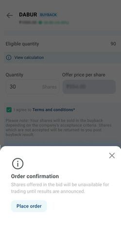 Buyback-It’s a corporate action in which a company buys back its shares from the existing shareholders, usually at a price higher than market price. You are eligible for a buyback if you hold stocks on the cut-off date in your account.