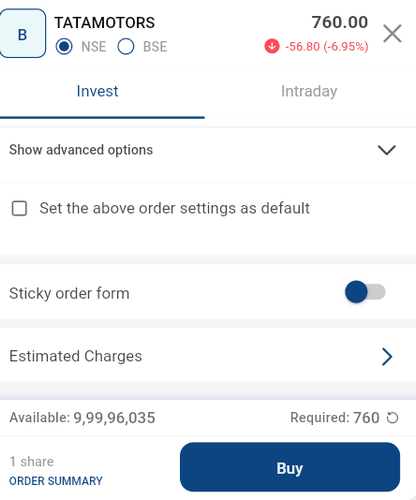 This is the order form offered to aid in faster order placement. This order form as the name suggest remains sticky i.e. does not close post order placement. This helps users to place multiple orders in a very short period of time.